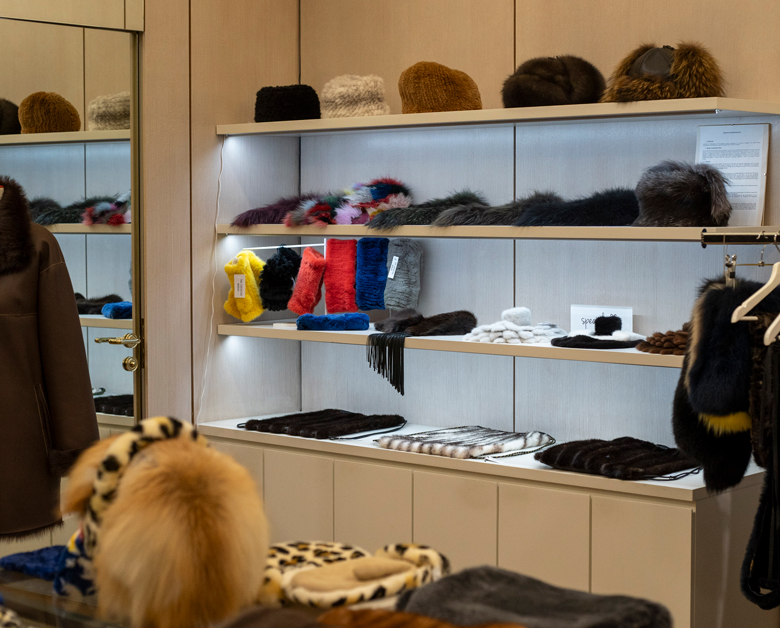 Dort haben wir ausgesuchte Materialien wie z.B. Nerze, Füchse, Bisam, Waschbär, aber auch verschiedenste Lammfelle und Leder zu besonderen It- Pieces verarbeitet. Gern können Sie diese Teile anschauen, probieren und fühlen.
